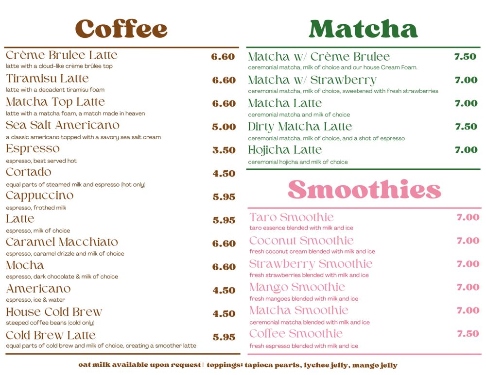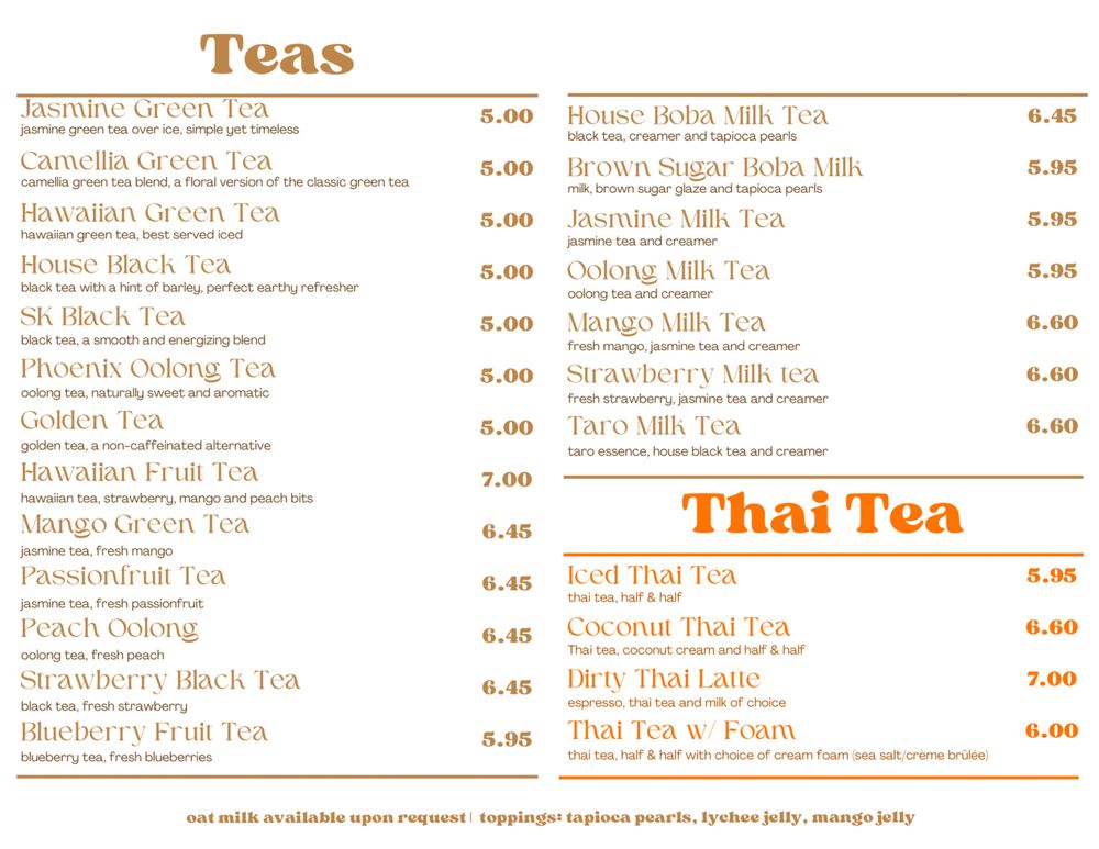 But the menu doesn't stop there. Indulge in the rich Matcha Creme Brulee or the refreshing Grass Jelly Dessert for a unique twist. Pair your sweet indulgences with savory options like Seasoned Fries and Fried Dumplings, making every visit a feast for the senses. With warm customer reviews highlighting the friendly staff and quality of dishes, Cafe Sweets is truly a gem worth revisiting.