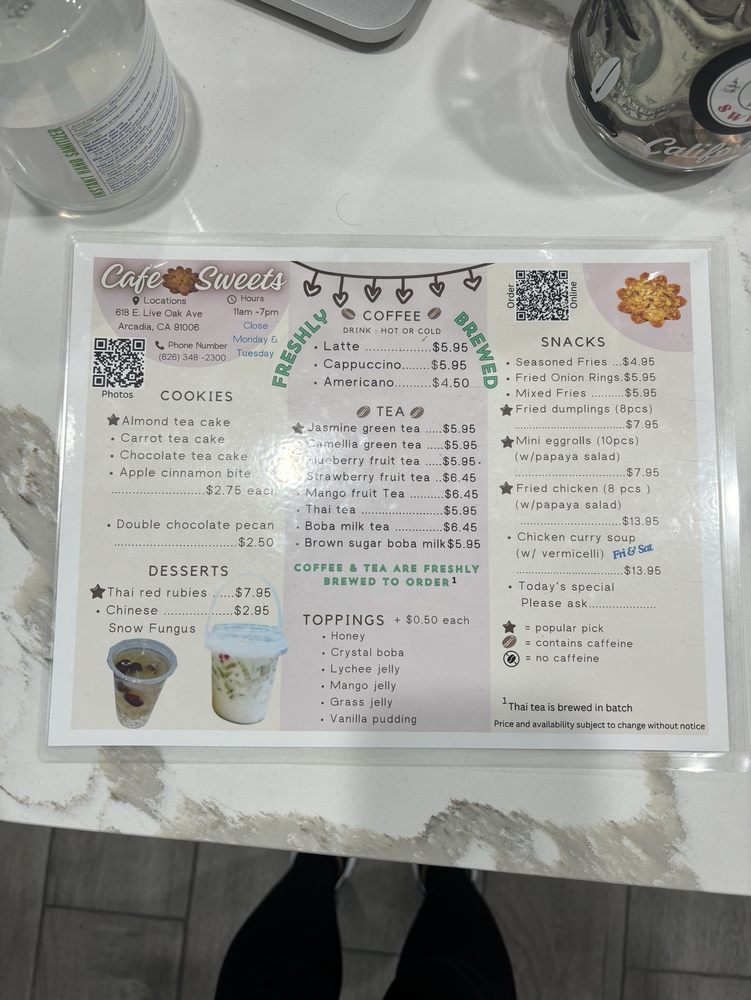 Welcome to Cafe Sweets, a delightful haven for dessert lovers nestled in Arcadia, CA. Known for its vibrant atmosphere and friendly service, this charming café specializes in a variety of Asian-inspired treats. One standout is the Thai Red Rubies, a beautifully crafted dessert featuring chewy tapioca, jellies, and fresh fruits, all sitting in a rich coconut milk bath. It's a textural delight that beautifully blends sweetness and creaminess.